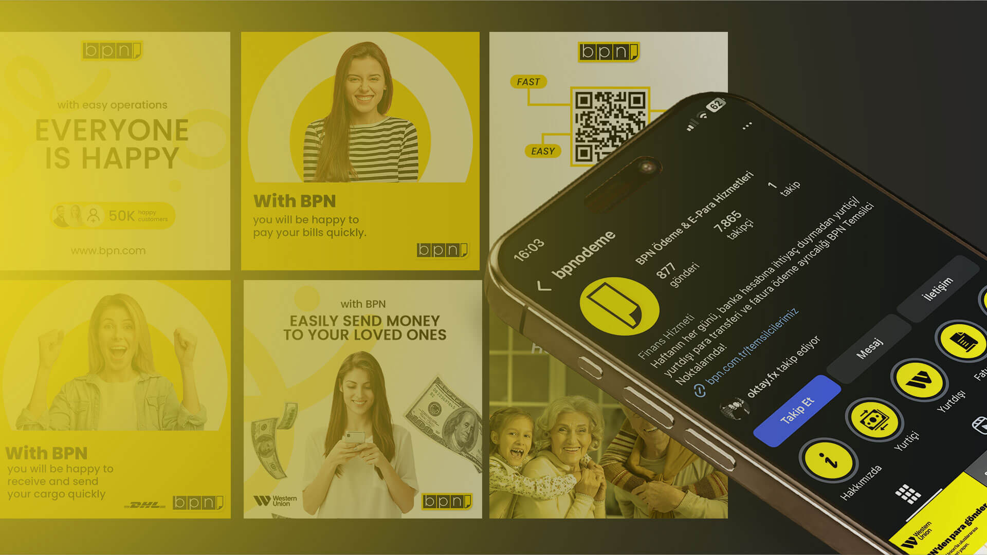 BPN için kapsamlı bir markalama süreci yürüttük; mağaza içi–dışı yönlendirmeleri tasarladık, kurumsal görsel dili oluşturduk ve sosyal medya iletişimini markanın çizgisine uygun şekilde kurgulayarak güçlü ve tutarlı bir marka deneyimi ortaya koyduk.